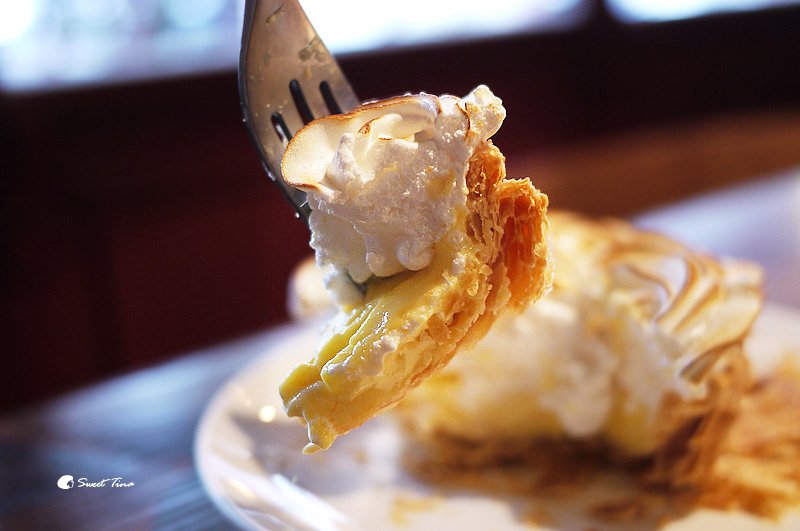 檸檬派 - 上頭雖然是奶油拉花,但好像個藝術品,有點不捨破壞啊,真的好美唷。