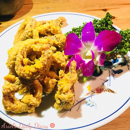 酥炸過的透抽裹上滿滿的鹹蛋黃