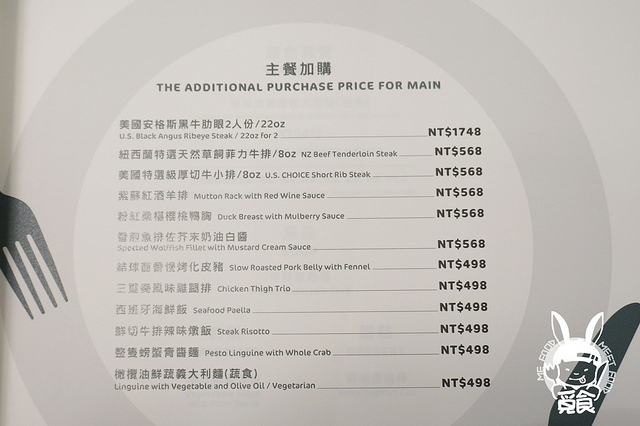 套餐來說 除了雙人份的安格斯黑牛肋眼(22oz)是1988之外