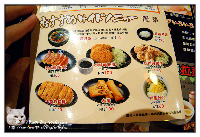 一些副餐部分,然後雖然我忘了拍,不過還有一些拉麵裡的配料加價項目。