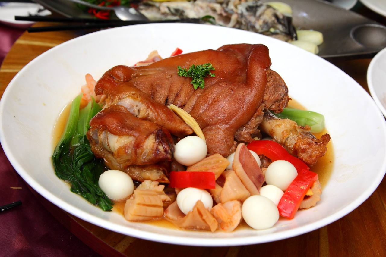 傳統年菜桌菜中一定會有一道象徵圓滿豐收的圓蹄,主廚予以改良,在豬腳中加入鵪鶉蛋跟魷魚,讓圓蹄口感更加美味豐富!