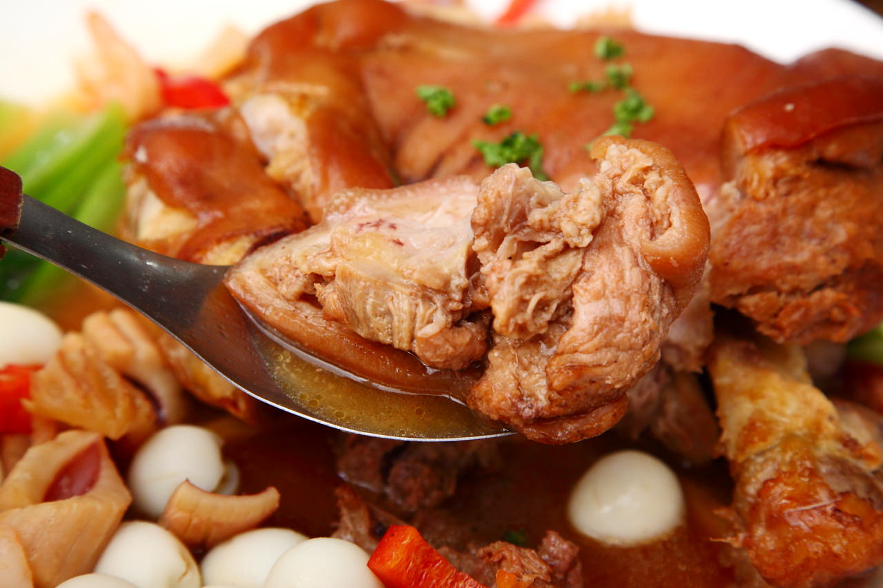 圓蹄肥瘦比例完美,內層的肉也有吸收到蹄膀的豐潤油香及醬香,皮Q肉嫩清爽的口感,肥而不膩