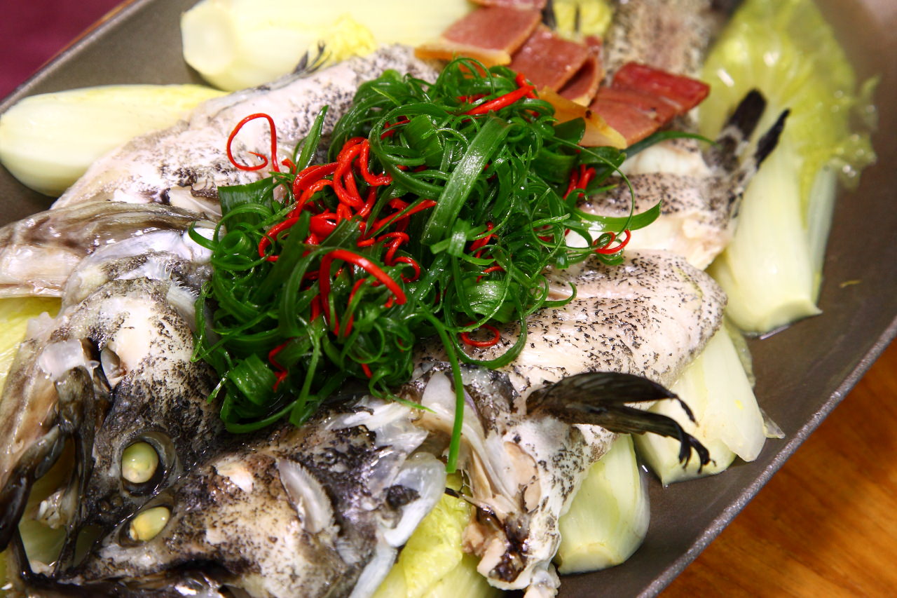 選用的石斑魚肉質厚實細緻,一般蒸魚都是用魚露或是蒸魚醬油,主廚是用自己以熬煮的上湯,讓石斑魚吃起來更加鮮香清爽,能夠更直接的品嘗到鮮魚的風味,襯底的娃娃菜也好好吃,魚湯的精華充分的滲入娃娃菜之中,加上上湯煨煮,鮮上加鮮!
