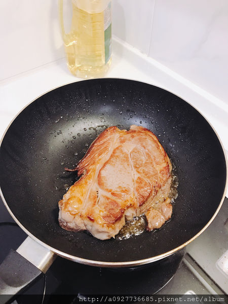 超級大片的,厚度也有50元硬幣這麼厚,份量十足!不怕不夠吃,油花也很漂亮,滾媽已經開使期待它煎好上桌了。