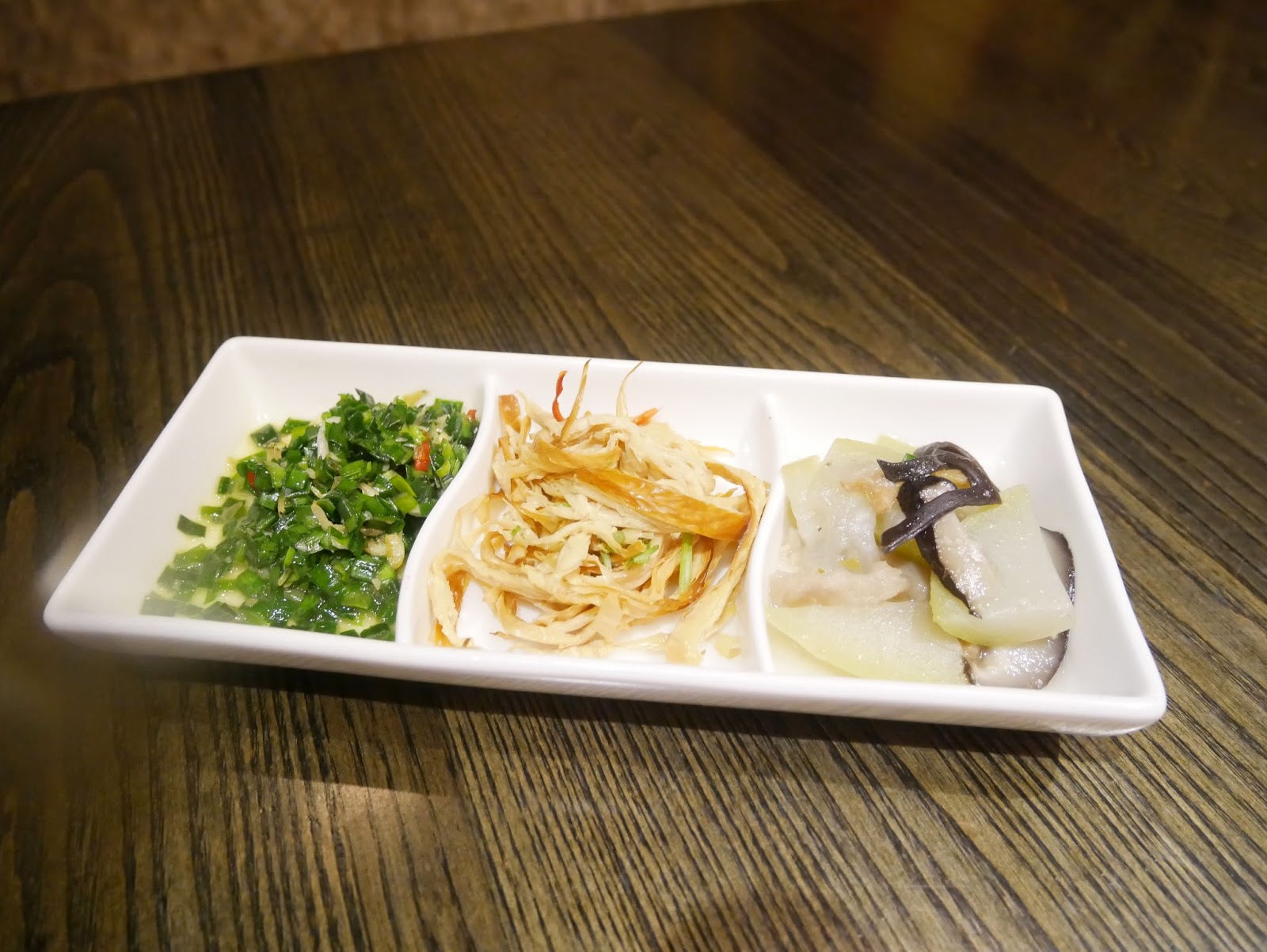 ▲三道配菜很有質感地用三小格盤盛在旁邊