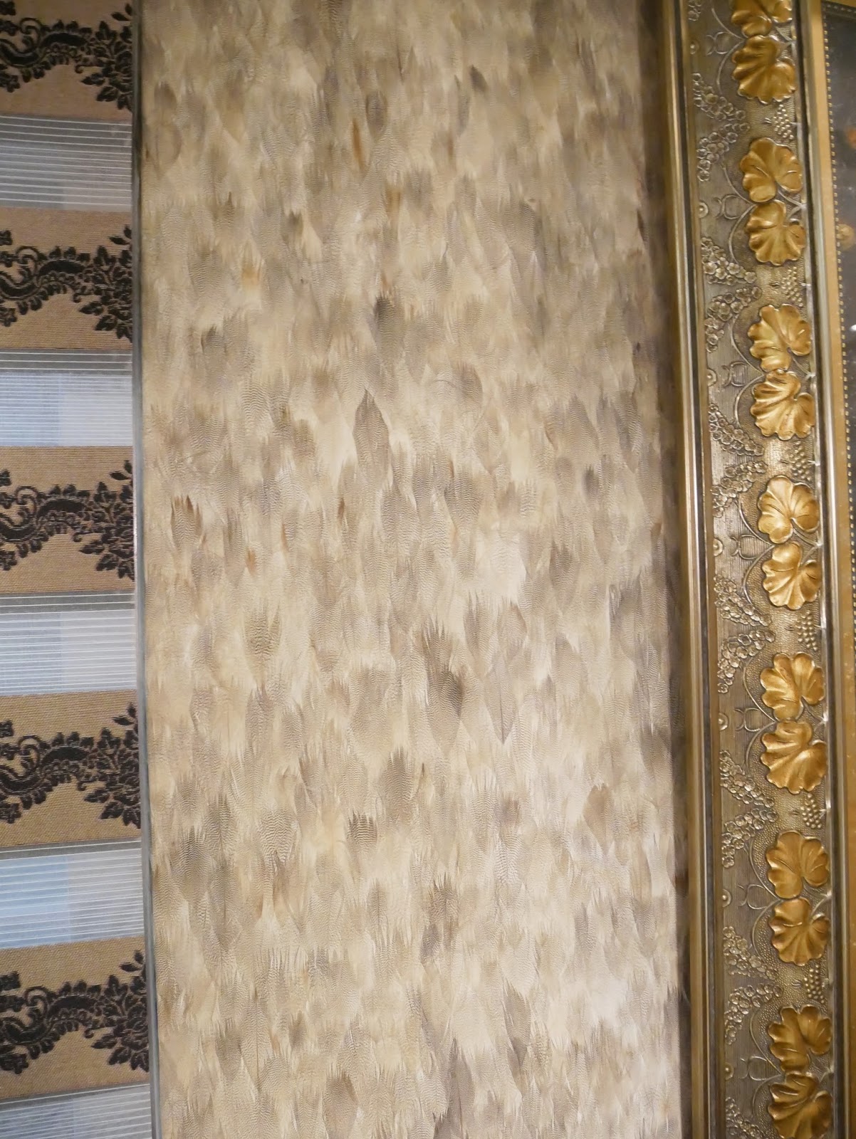 壁貼看起來有點眼熟 一問才知道 每根都是真的孔雀羽毛!?