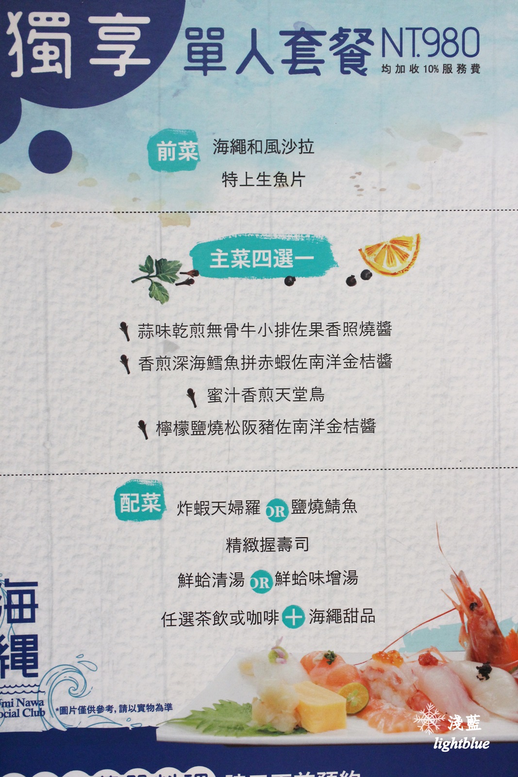 這次來海繩 Umi Nawa用餐讓人很驚豔,除了餐點擺盤華麗而誘人,食材表現也都具有高水準,表裡如一,重點是價格平實,不管是想簡單吃飯還是要多人聚餐,菜色調配上有很大彈性,是讓我想回訪的一家店。