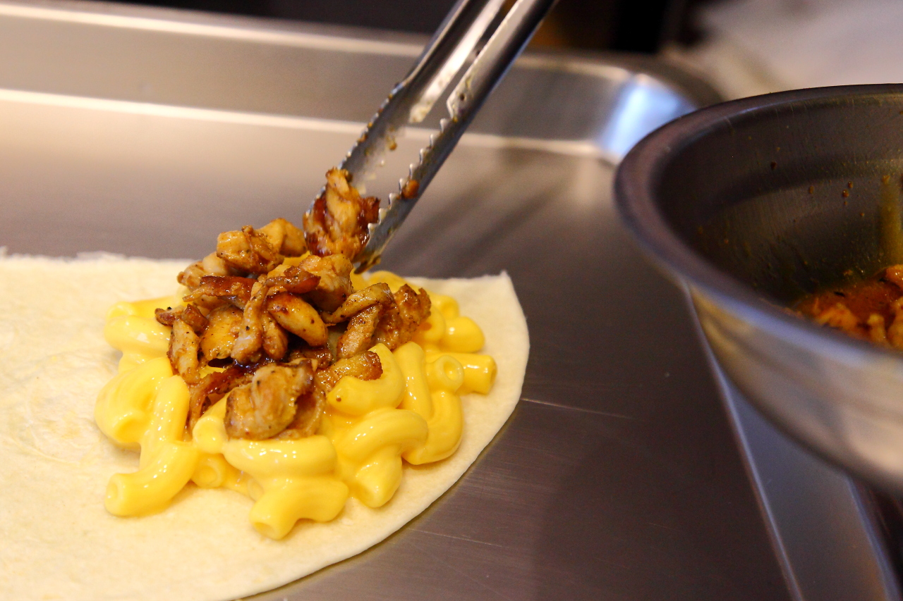 所有產品都是現點現做,接單後就開始製作捲餅囉!攤開一大張的捲餅皮,然後開始在上面瘋狂的堆疊配料!