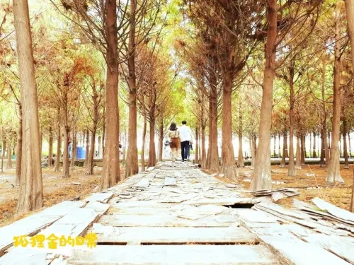 通過了門口的貨櫃屋,再往前走一點!眼睛為之一亮~ 季節已經漸漸轉為秋天,所以落羽松也開始變成黃色的了,天氣再冷一點,落羽松的黃就會轉成火紅!!