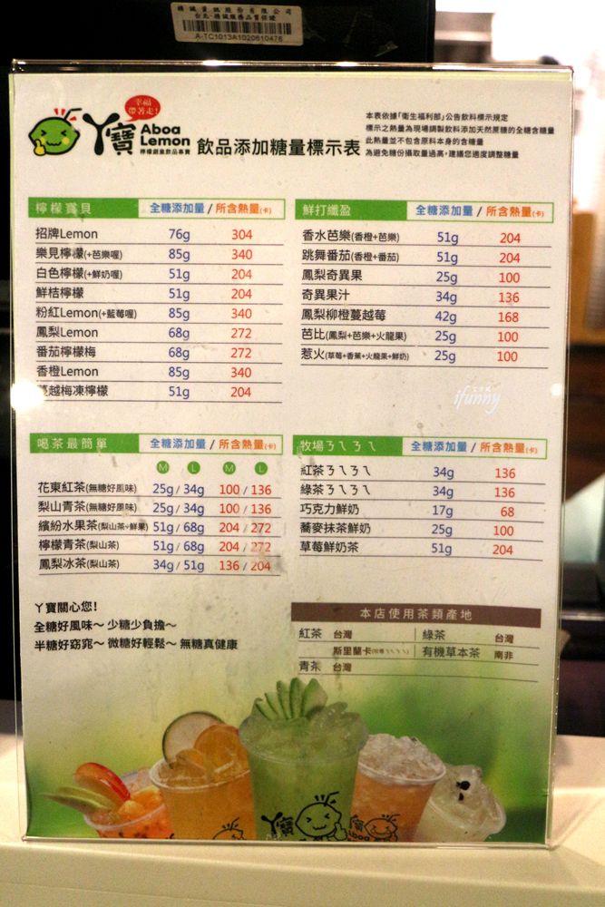 丫寶檸檬 Aboa Lemon的菜單簡約中帶可愛感。
