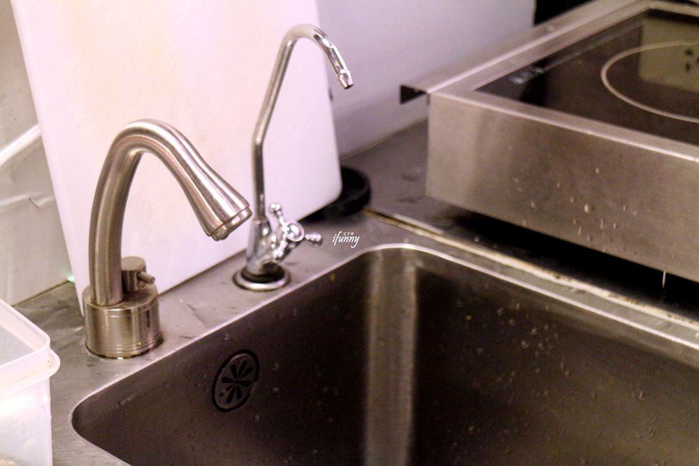 服務人員很熱心地讓艾方妮參觀他們的內場,這個就是接蔬果活氧機的水槽,是他們清洗水果的地方。
