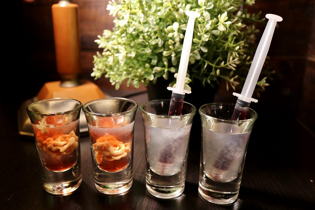 腦子超級逼真,而且是我喝過這種創意shot裡面最好喝的!!一口乾了香甜酒氣整個衝上來很過癮,至於腦子是甚麼做的就賣個關子XD.