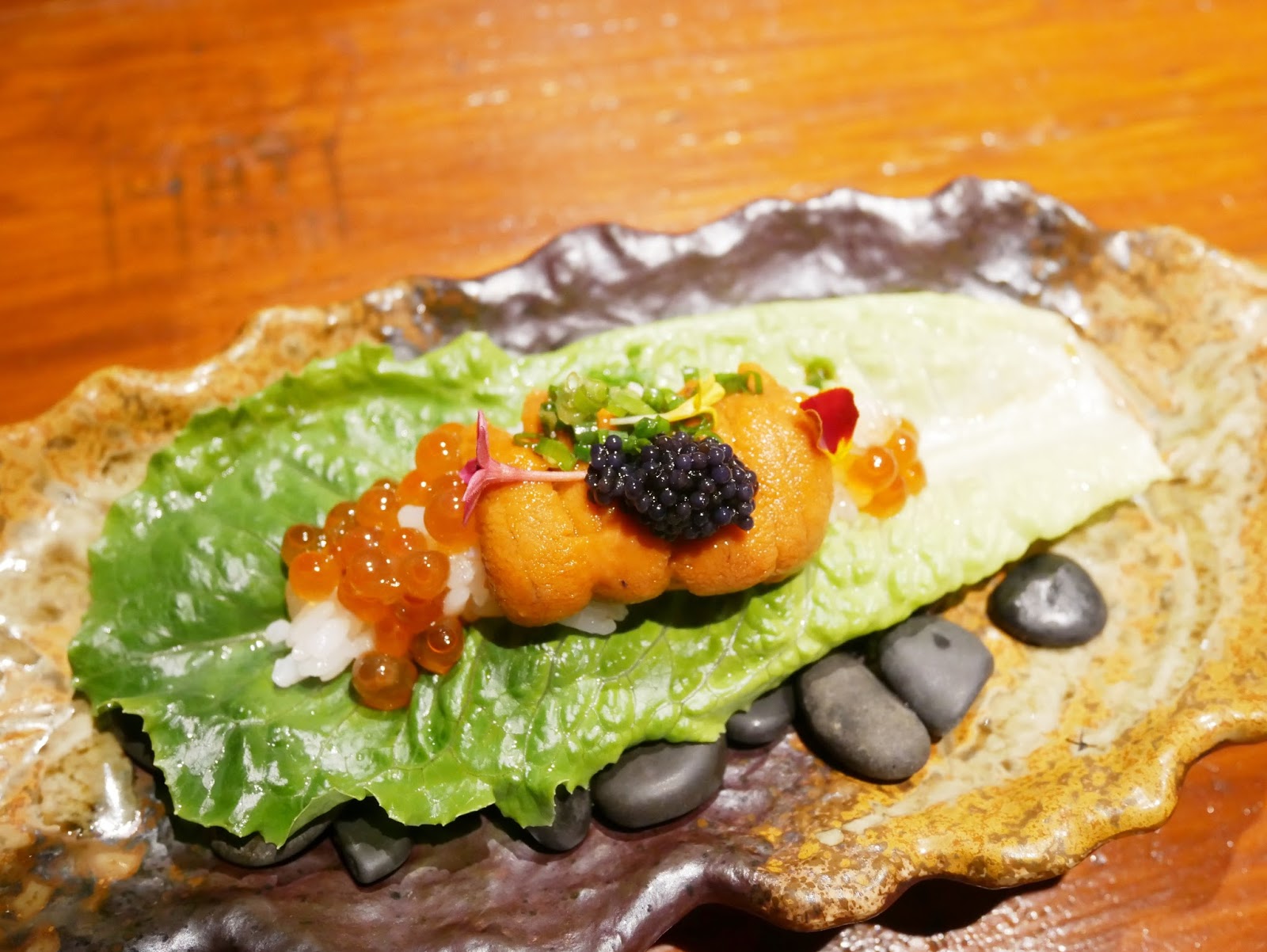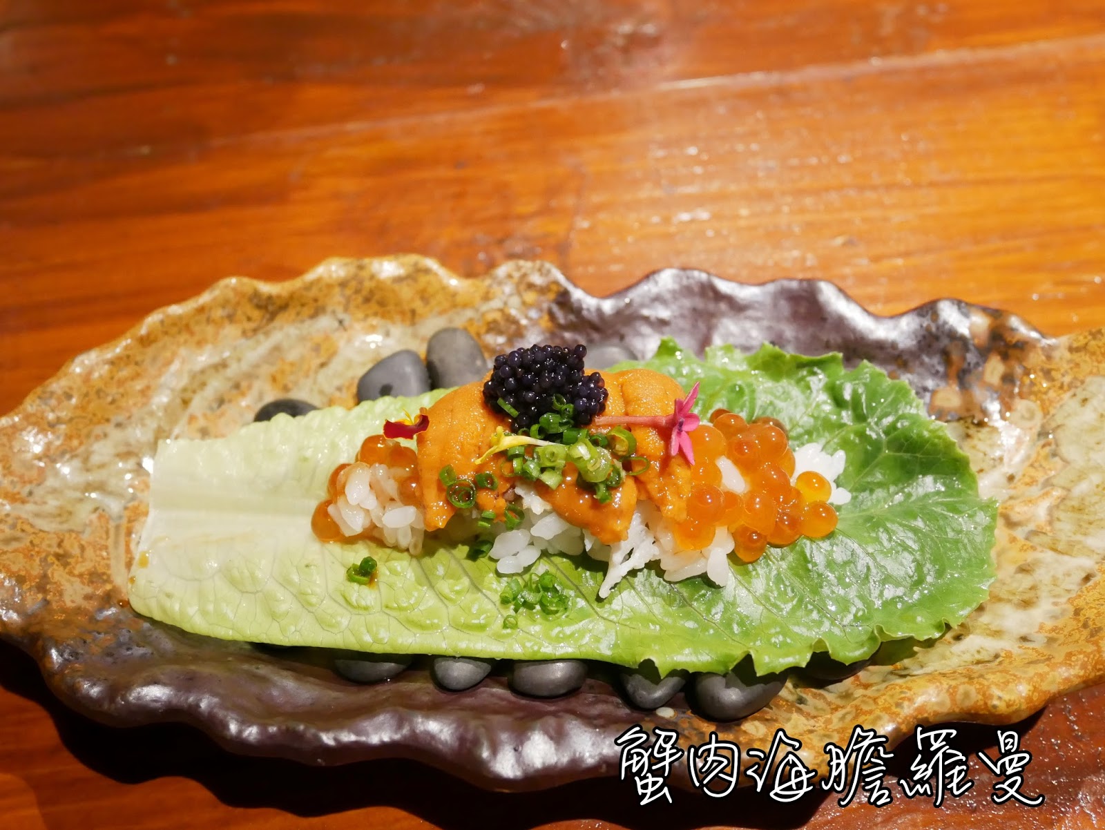 ▲這道其實非常豐富 除了品名外還有魚子醬 鮭魚卵 食用花