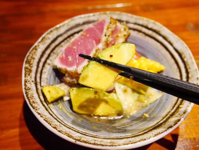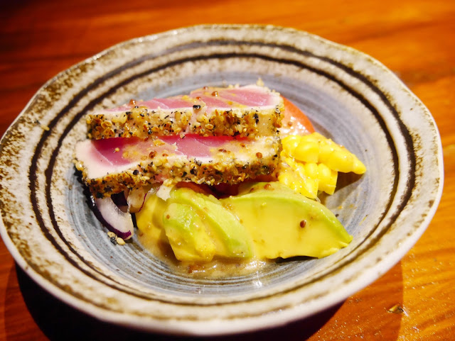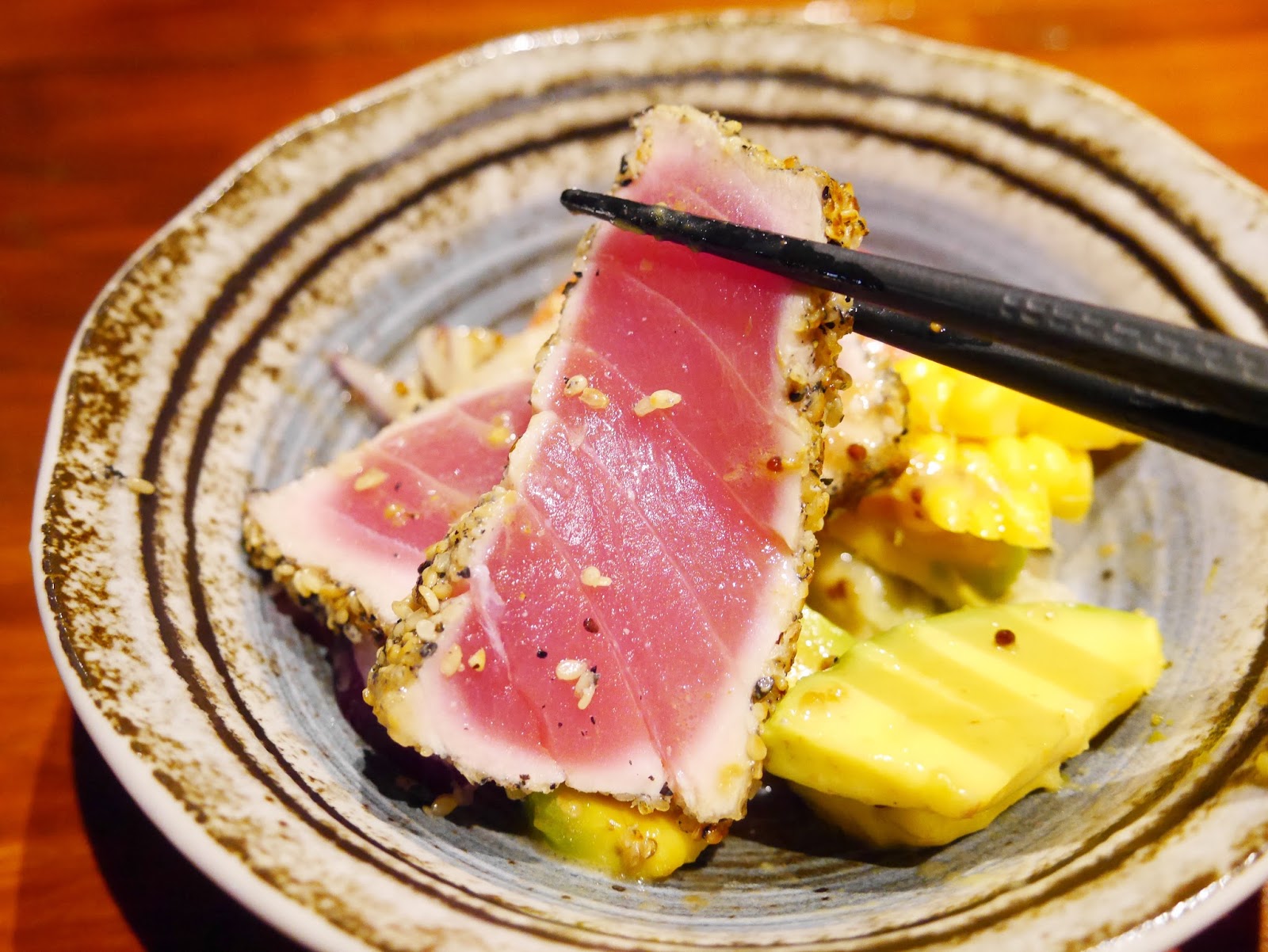 其實是把鮪魚生魚片沾芝麻下去稍煎 外熟內生