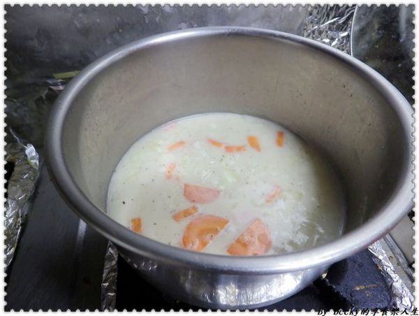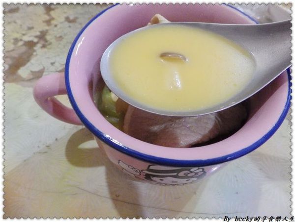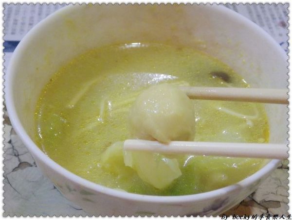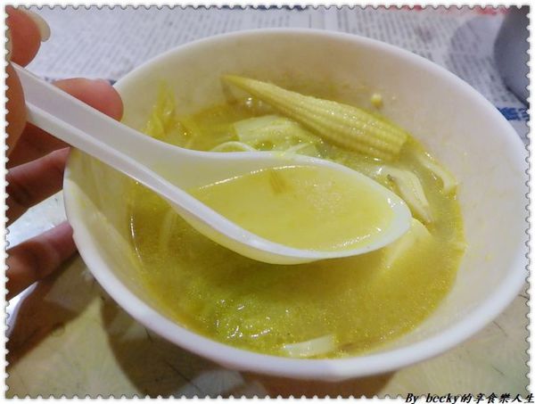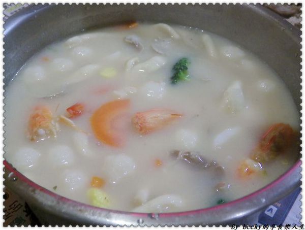 喝一口湯頭有著濃濃的甜味,蔬菜甜味及海鮮的鮮味都融入湯頭,味道鮮甜濃,如果再加上酥皮的話,會更讚咧!