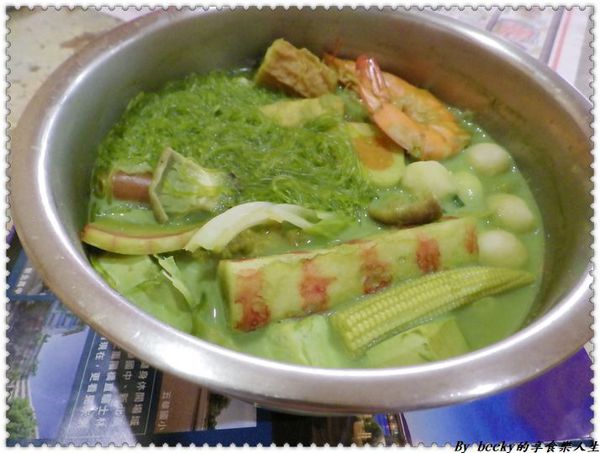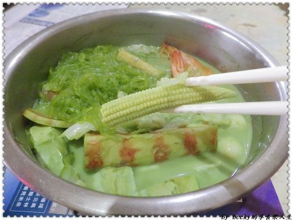 這個是運用台灣抹茶搭配牛奶湯底巧妙結合,除了有牛奶鍋的濃郁香氣外,還有抺茶的味道,吃起來帶點微苦微奶香,這個是鹹的喔!
