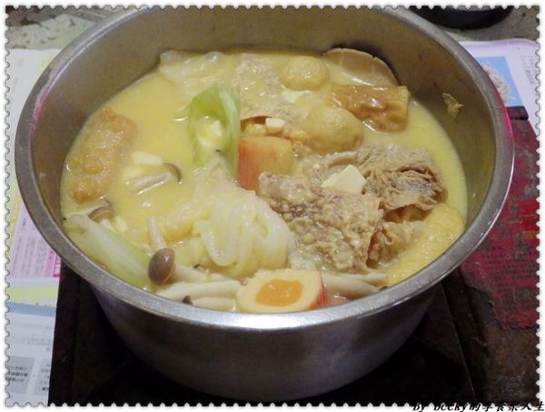 在桌上,放上常吃的火鍋料~邊吃邊丟到咖哩鍋裡頭煮~