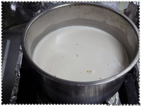 兩種皆倒入鍋中,可以依自己喜好加入,喜歡抺茶味重的就可以多加一點。