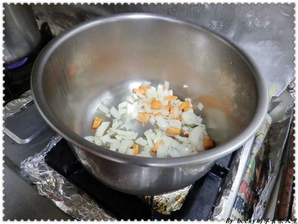 這個是顛覆火鍋湯底的做法,先將調味料拌炒後,再放入熱水及湯底喔!
