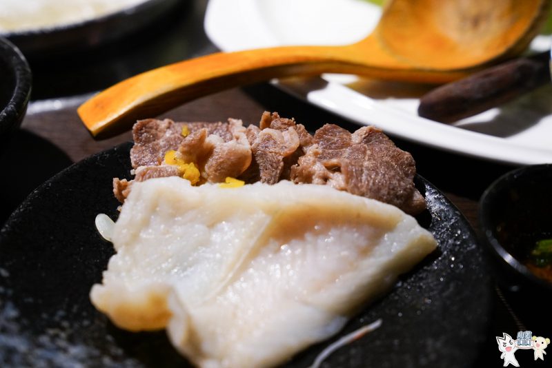 供應的菜盤豐盛且大份,話說還有有芋頭丸跟花枝漿耶,躲在後面的則是有機蔬菜