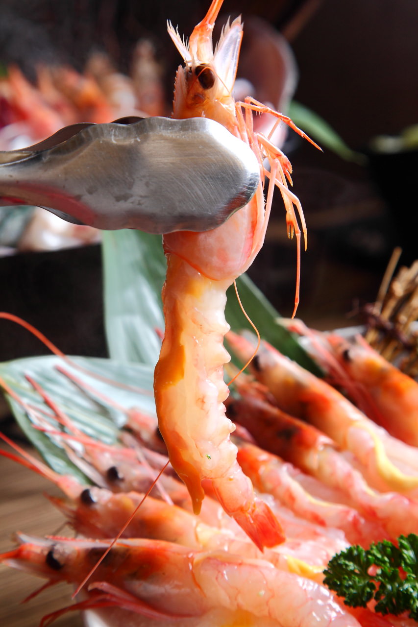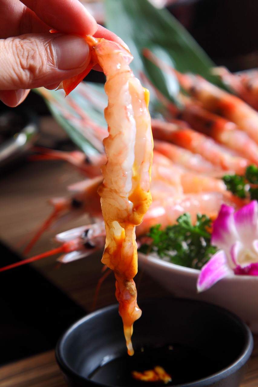 吃蝦蝦!海屋鍋物手作烤物的蝦類超強大,因為堅持只使用野生的蝦種,所以提供的蝦種不太一定,今天有甜蝦、澎湖大明蝦及蝦母