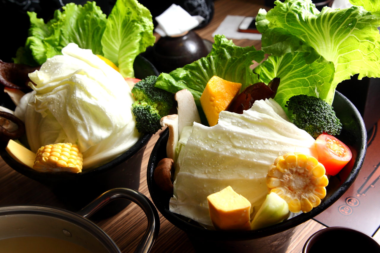 雙份滿滿綜合山蔬菜盤,可以先加一些蔬菜到湯底裡讓湯底變得更鮮甜