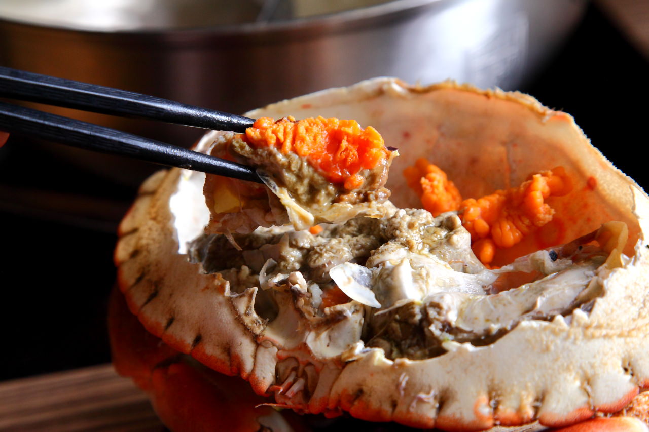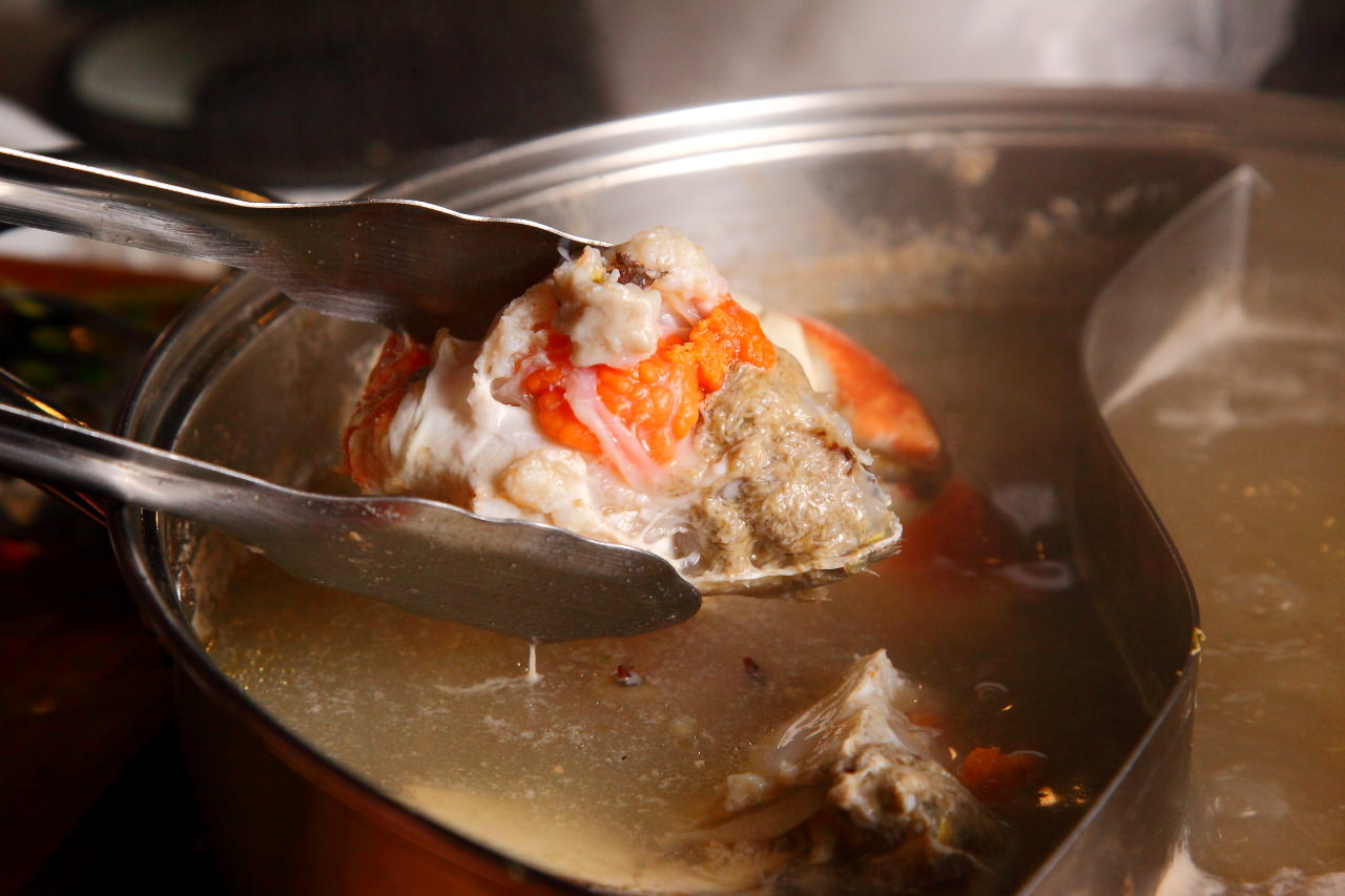 活體麵包蟹!剛剛還在水族箱裡爬呀爬的大螃蟹,現在跑到鍋裡泡溫泉囉!