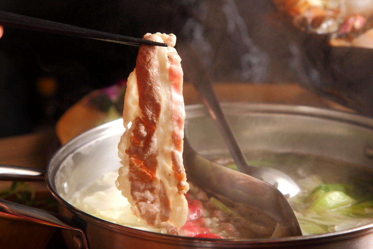 下鍋輕涮5~7分熟,肉質鮮甜多汁,軟嫩瘦肉中帶有油脂讓美國雪花培根牛吃起來的口感不柴不膩