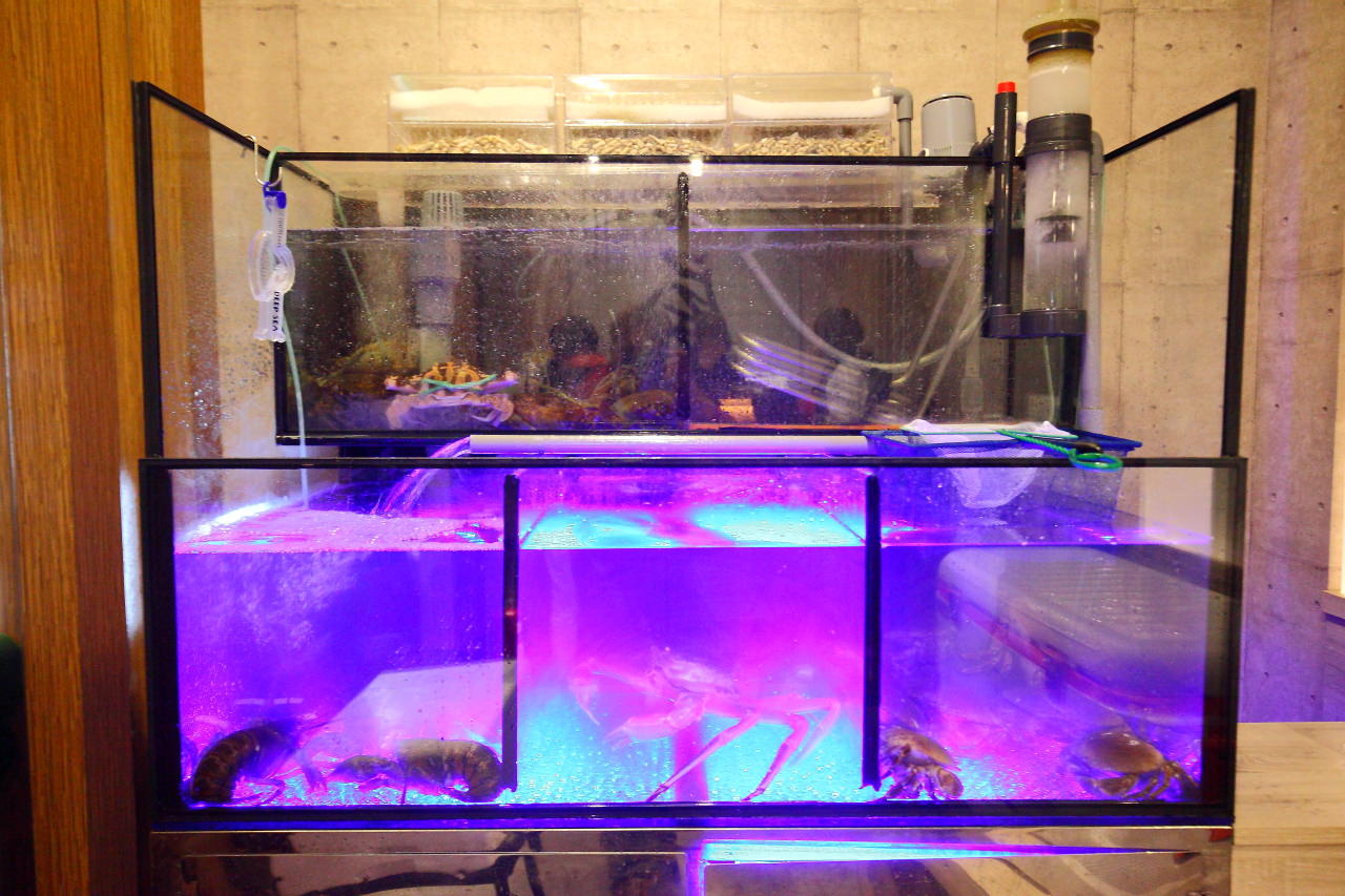 在海屋鍋物手作烤物,你絕對吃不到冷凍的海鮮,所有的海鮮都是每日漁港直送,堅持只賣野生的海鮮,店內也設了大型的流水活水魚缸,裡面的蝦蟹海鮮,看對眼就可以直接秤重料理成盤中飧囉