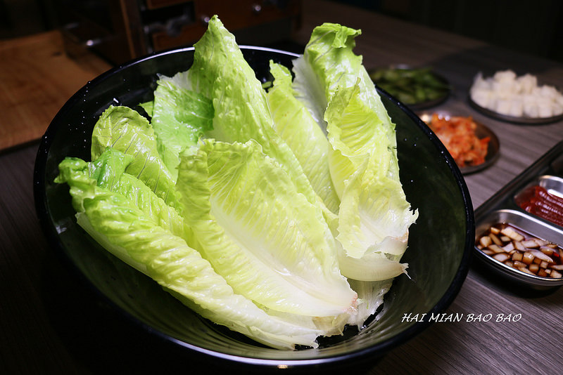 把生菜包著松阪豬+泡菜