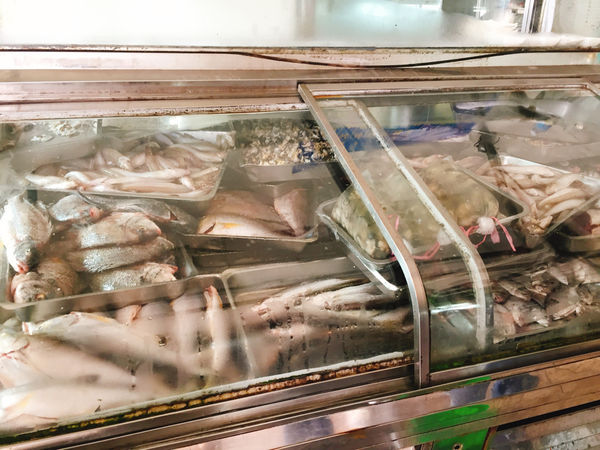 裡面擺滿海鮮的冰櫃