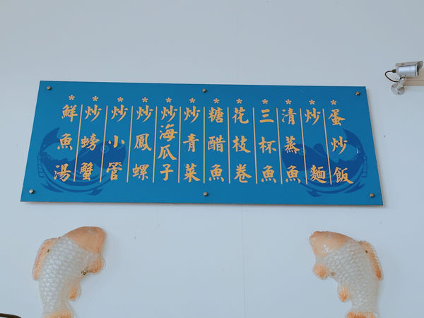 牆壁上有菜單 但假日好像都是做一桌七菜一湯 一桌$2500元 有魚🐟有蝦🦐有湯、有蚵仔、海瓜子 海產就是新鮮隨便煮也好吃