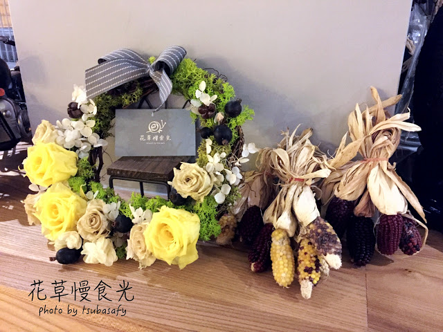 等待餐點的時候就在店裡拍照,擺設的許多不凋花、乾燥花以及擺飾都非常的漂亮跟別緻,這邊除了用餐之外也可以請手工藝巧的老闆娘包一束漂亮的花束送人擺飾都非常適合。