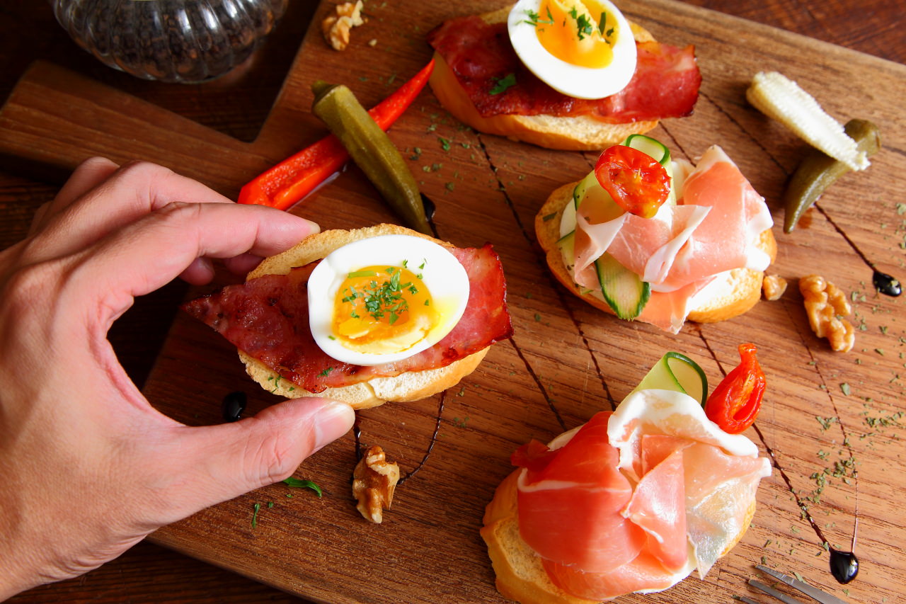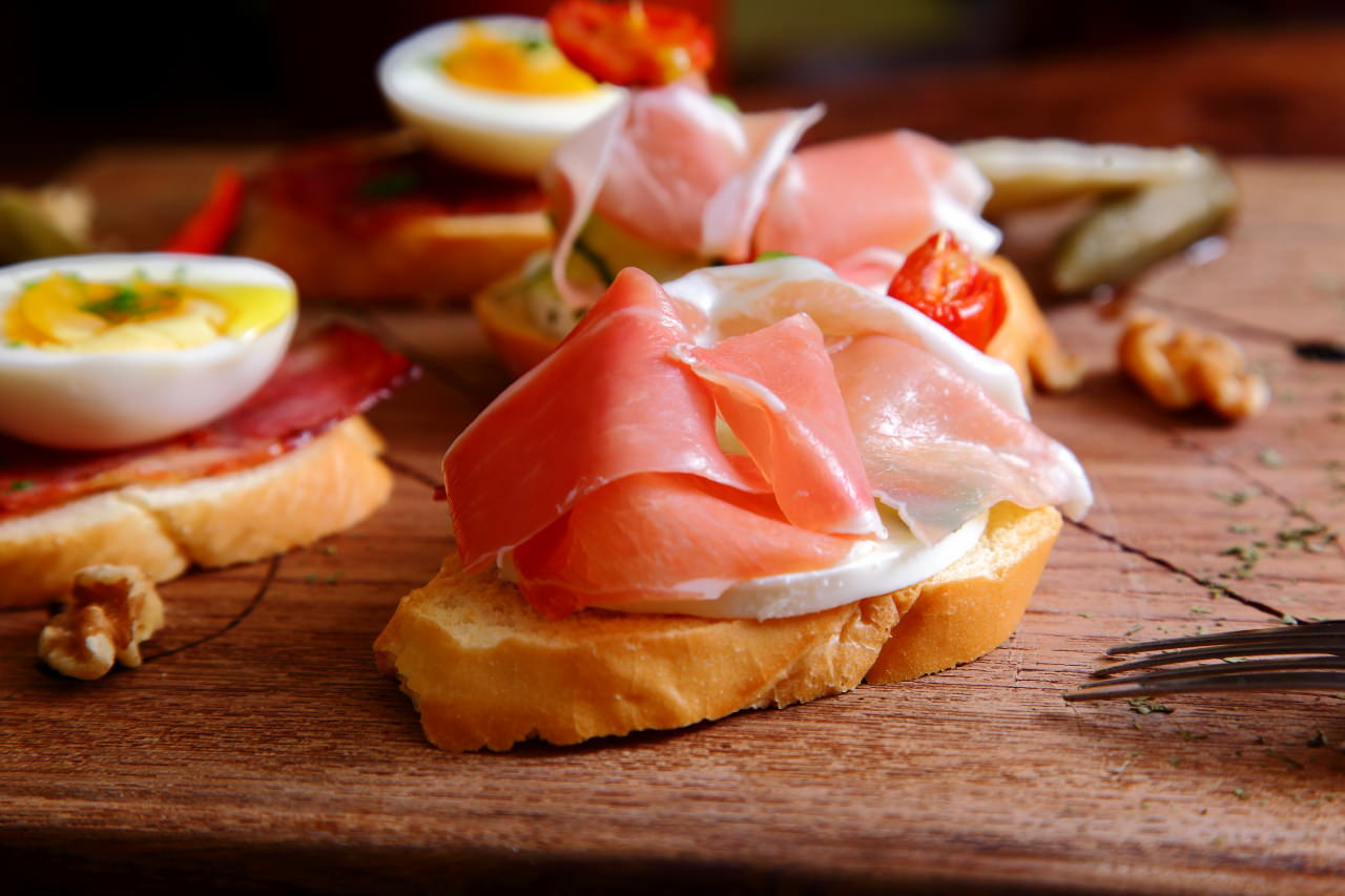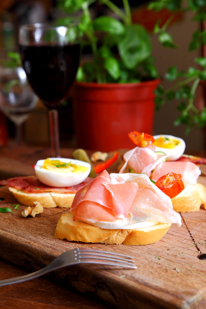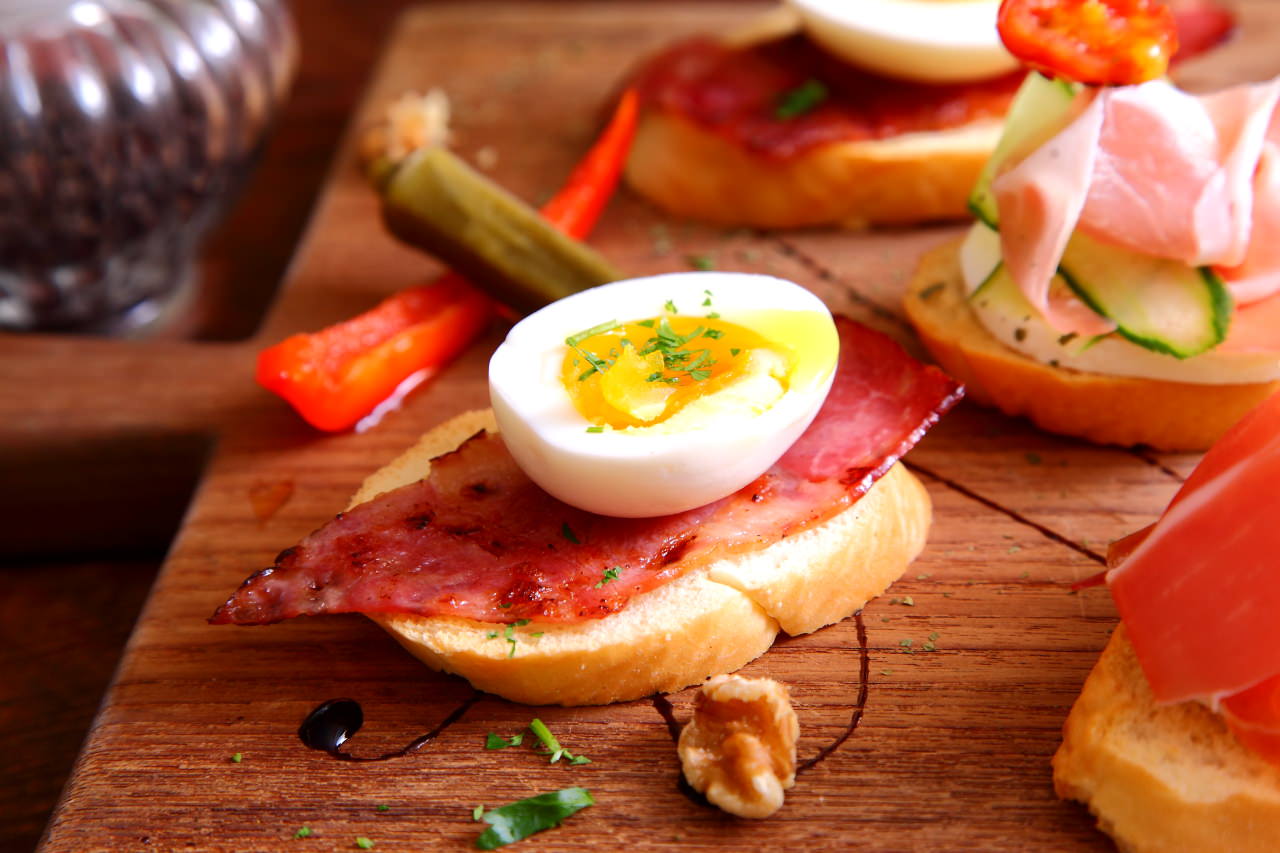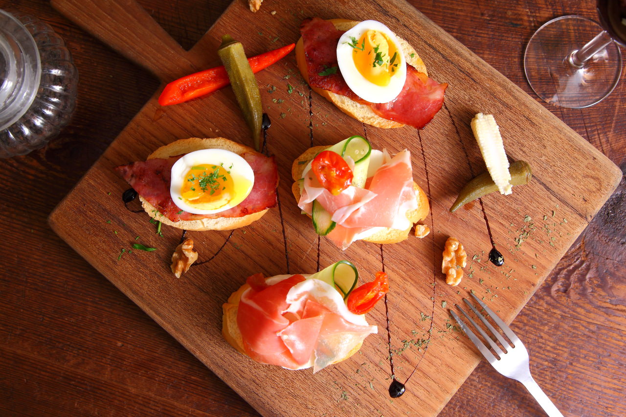 TAPAS是西班牙的開胃前菜,Time’s Eat有超多樣TAPAS可以選擇,TAPAS其實沒有侷限一定要怎麼樣的料理方式,食材做法都可以很隨興,Time’s Eat的TAPAS一份是兩個,咬咬分別點了生火腿起司跟培根佐酒釀糖心蛋