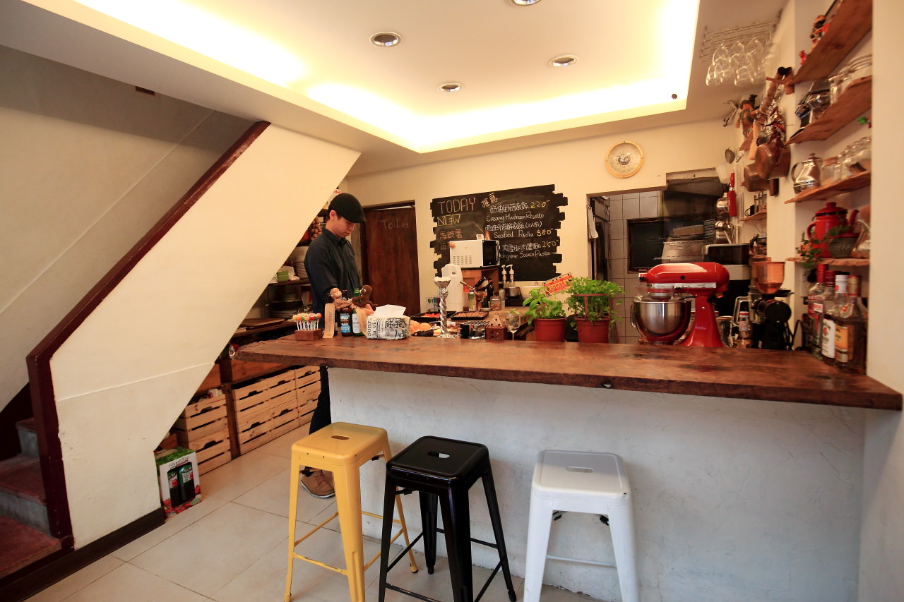 Time’s Eat雖是以老宅改建,但沒有更動原來的格局,一樓規劃吧檯區跟開放式的廚房,沒有太過度的裝飾,簡約裝潢,反而讓人有種輕鬆無壓力的用餐氛圍
