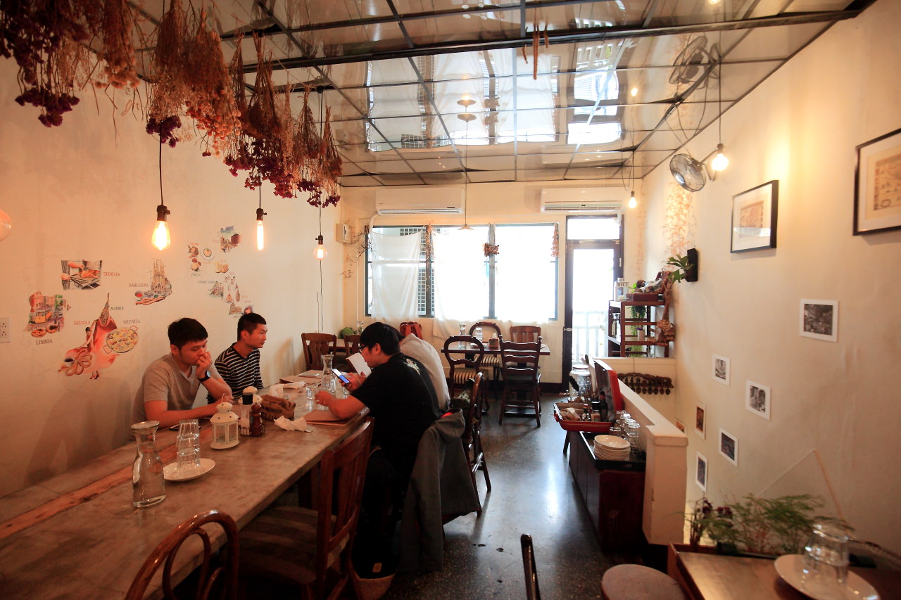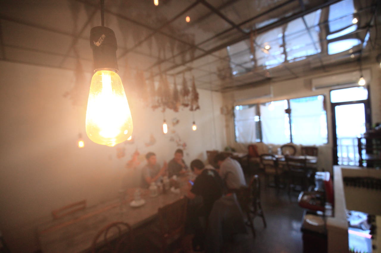二樓的用餐區域,小小的,暖暖的,Time’s Eat在屋頂上綁上幾株乾燥花,搭配暖色調的燈泡及木質家具,散發出溫馨舒服的氣氛