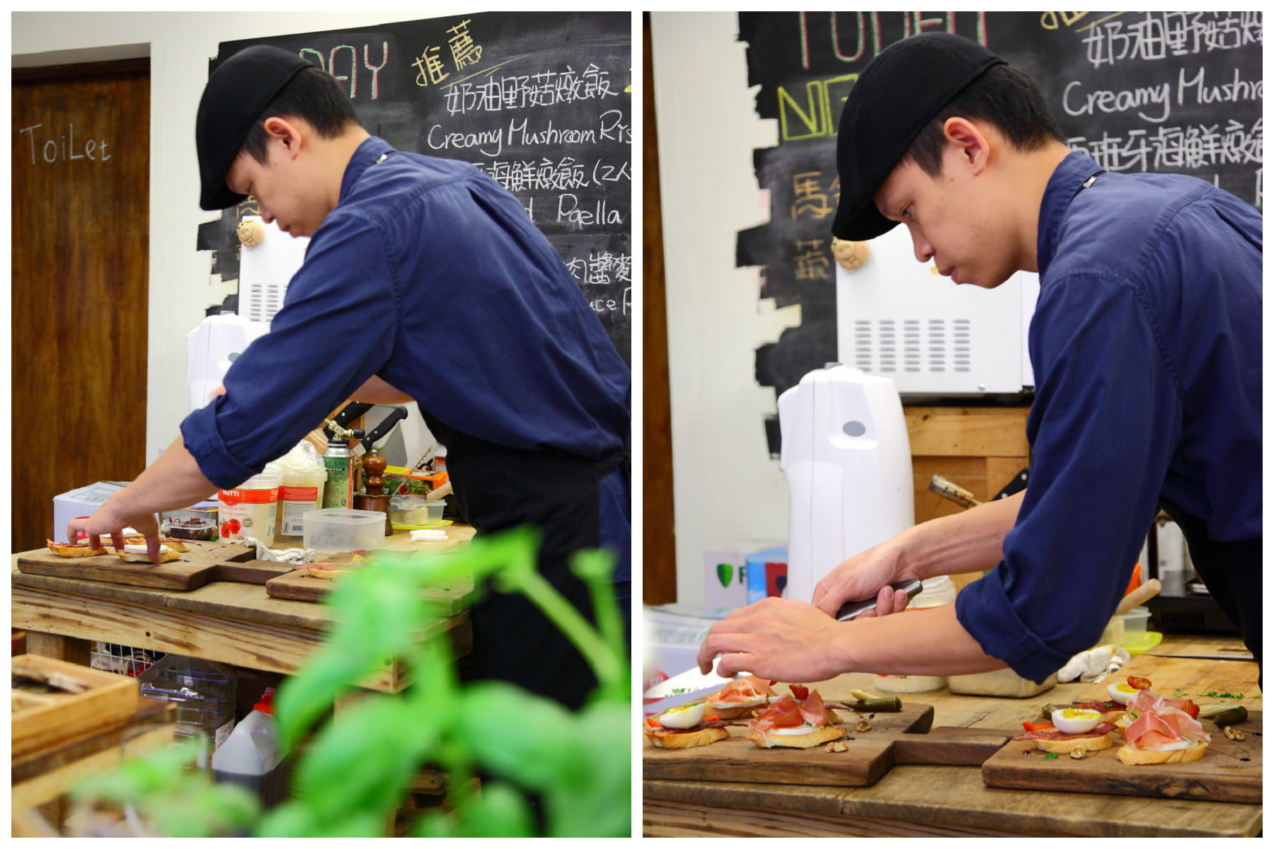 回到一樓,咬咬喜歡坐在吧檯,近距離欣賞主廚在他的專屬舞台上表演,聞著香氣就會覺得料理好像更好吃