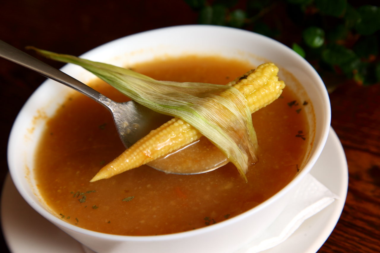 今天是烤玉米筍湯,湯底是用大量的蔬菜熬煮,再加入烤過打碎的玉米筍,可以喝得滿滿玉米筍的口感甜味,冷冷的冬天來上一碗超暖心!