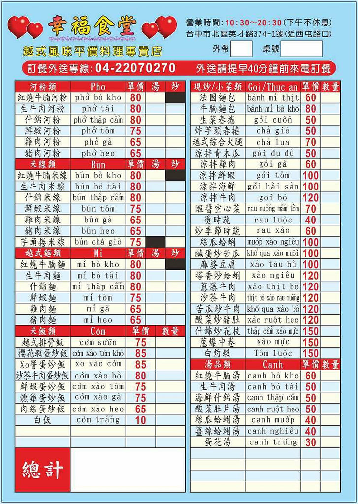 幸福食堂 台中越南料理 台中越南小吃 科博館平價美食 科博館美食 台中西區越南料理 台中越南菜餐廳 台中越南河粉 台中越南美食 台中美食季 集點抽獎 午餐外送