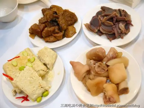 令人有點懷念的滷水味,拼盤裡有鵝胸、鵝血、鵝腸、下方還有鵝掌翼,