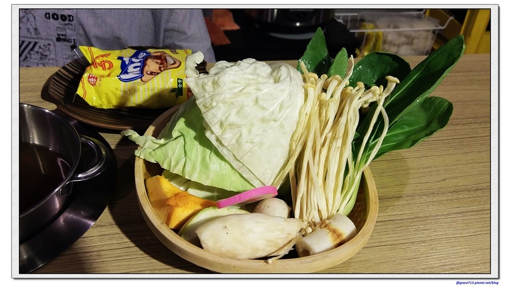 菜盤以蔬菜為主, 沒什麼火鍋丸子, 算是蠻健康的, 我選了王子麵為附餐,