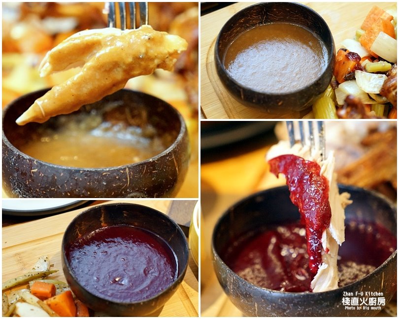 ▼另外也可以搭配醬料享用,一種是濃縮火雞肉加上蔬菜精華的火雞肉汁,另外一種則是以新鮮蔓越莓、柳橙汁與砂糖所熬煮而成的蔓越莓醬;搭配火雞肉汁吃起來不僅鮮香甜美,肉汁香味更加濃郁,加上蔬菜的甜美更是提味不少!