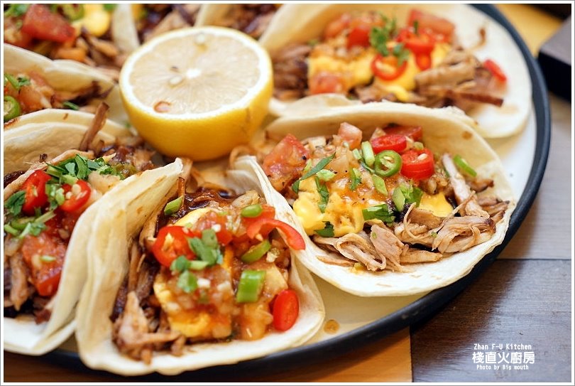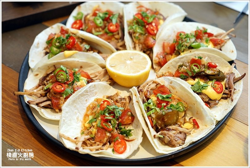 ▼裡頭採用台灣豬五花去皮香煎後,再加入紅蘿蔔、西芹、蒜頭、紅酒與西班牙紅椒粉熬煮至軟嫩入味,再搭配手撕而成!上頭的醬料則是紅酒醬、黃切達起司與自製莎莎醬,中間還有提供黃檸檬,都可以視個人喜愛搭配享用!