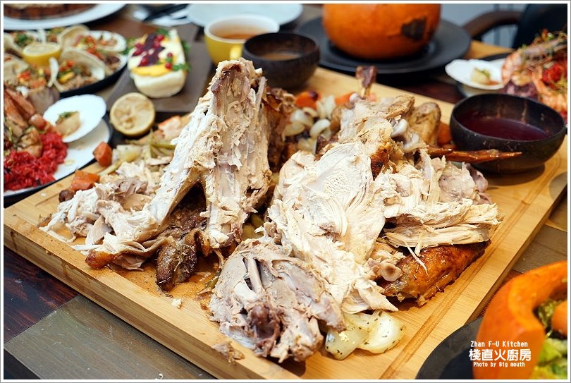 ▼八人份的餐點份量超多,大口覺得就算是12個男孩兒來享用也能吃得飽足又滿足~不僅瞬間擺滿整個桌面,而且豐盛又多元!尤其是那一整隻超大火雞更是超吸睛,也為整個聚餐掀起高潮啊!