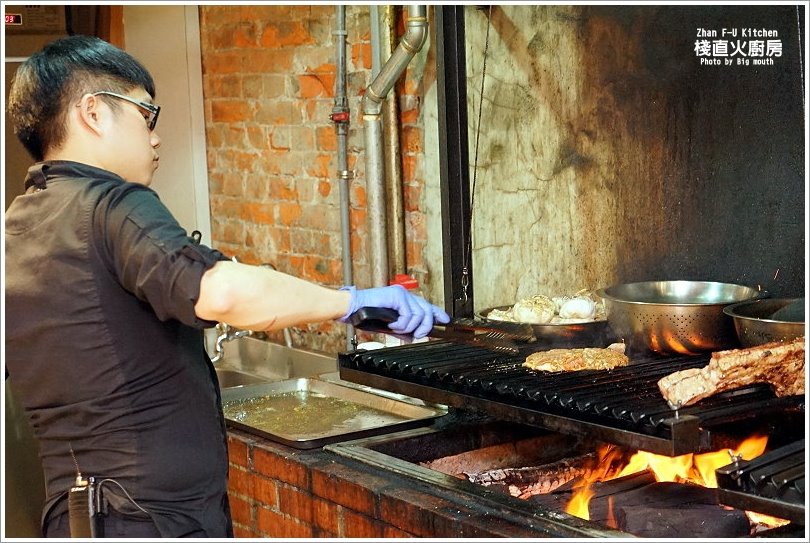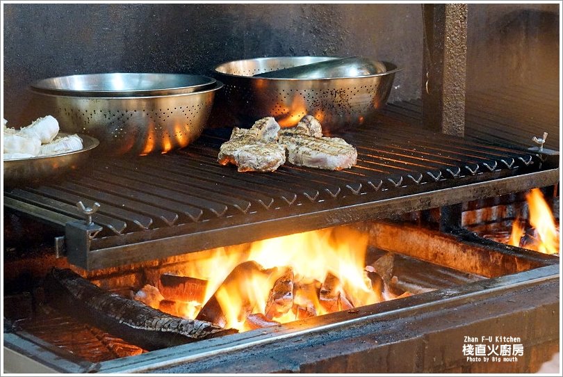 ▼半開放式的廚房空間,還可以看見裡頭正在採用柴燒原木碳烤的餐點,也是這裡的特色之一!