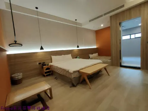 今晚住的房間,簡約時尚的設計,左邊是浴室,右邊是鞋櫃和行李架,往後走才是臥室,外面還有小陽台可以看到美麗風景