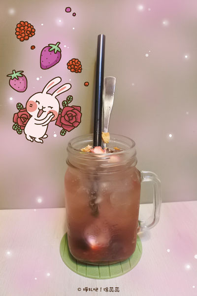 喝起來有玫瑰香氣的綜合野莓氣泡飲,裡面還加了草莓果醬提升甜度