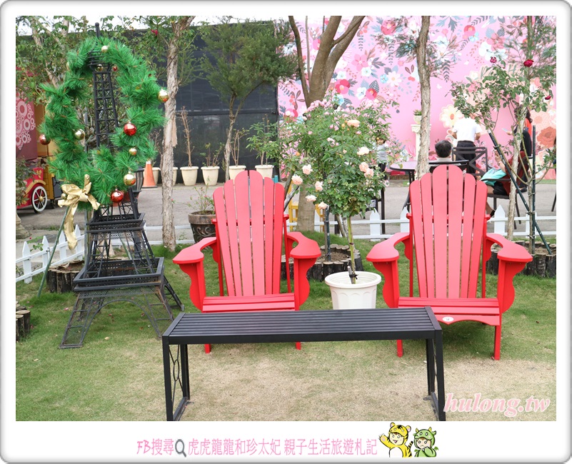 歐風的美麗莊園到處都開滿了玫瑰花朵,園區內有許多裝置藝術造景可以拍拍照,愛美拍的女孩也會喜歡這裡的氛圍