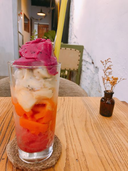 由上而下依次是火龍果 鳳梨 木瓜 與西瓜 !