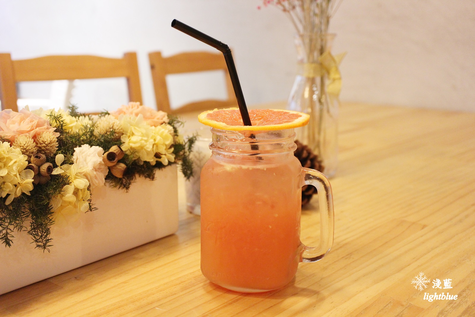 套餐都可在濃湯、咖啡、紅茶、可樂中擇一,也可以加價換購。這是蜂蜜葡萄柚,蜂蜜的清甜和葡萄柚的酸、苦平衡,好喝又大杯,還喝得到果粒,我很喜歡